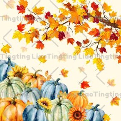 Autumn,Thanksgiving,Sunflower,Deciduous,White Pumpkin,Watercolor,Hand-painted