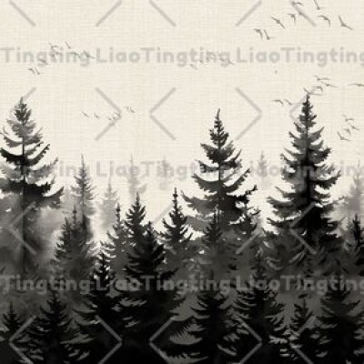 Watercolor,Forest,Bird,Linen,Vintage,Farmhouse