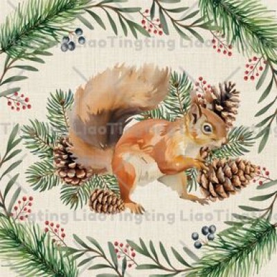 Christmas,Winter,Squirrel,Pine Cone,Berry,Plant,Pastoral,Linen