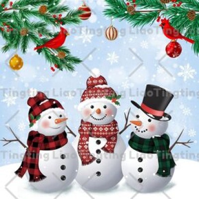 Christmas,Winter,Snowman,Christmas Tree,Pine,Robin,Christmas Ball,Blue