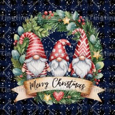 Winter,Christmas,Watercolor Style,Wreath,Pine Branch,Snowflake,Gnome,Plaid