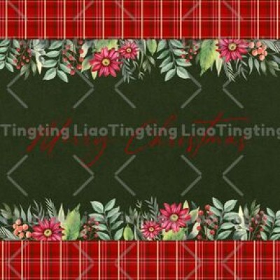 Christmas,Winter,Flowers,Berries,Plants,Plaid,Pastoral,Writing,Dark Green Background