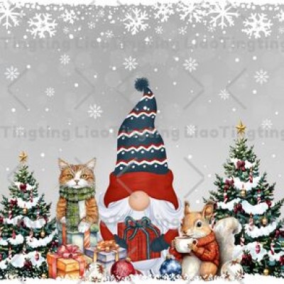 Christmas,Gnome,Christmas Tree,Snowflake,Squirrel,Cat,Grey