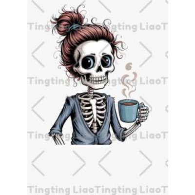 Brown,Blue,White,Gray,Cartoon,Classic,Life,Nature,Skeletons Churned With Pill Head,Wearing Open Shirts,Holding Coffee Cups