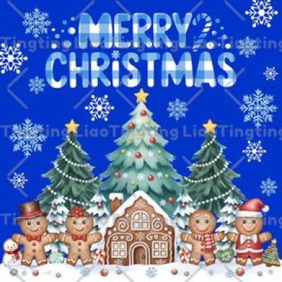 Christmas,Christmas Tree,Gingerbread Man,Snowflake,Text,Winter,Blue