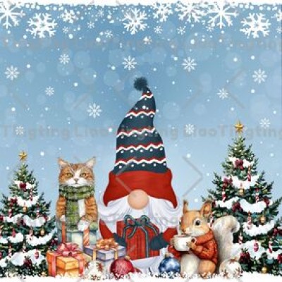 Christmas,Gnome,Christmas Tree,Snowflake,Squirrel,Cat,Sky Blue