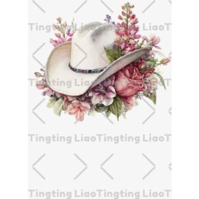 White Cowboy Hats,Western Elements,Floral Decorations,Watercolor Winds,Art Illustrations