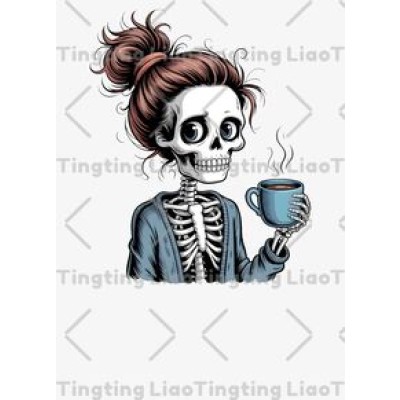 Brown,Blue,White,Gray,Cartoon,Classic,Life,Nature,Skeletons Churned With Pill Head,Wearing Open Shirts,Holding Coffee Cups