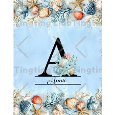 Letter Customization,Vintage,Ocean,Sandy Beach,Shells,Corals,Blue