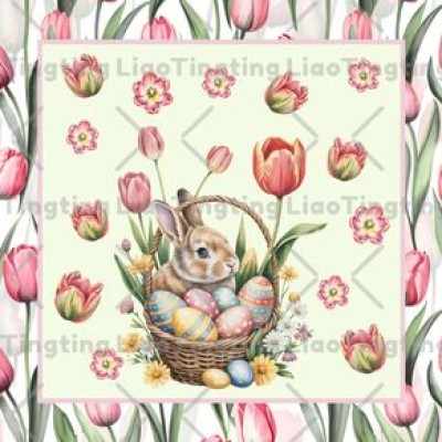 Easter,Colored Eggs,Rabbits,Tulips,Watercolor Style