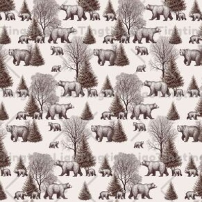 Forest,Animal,Bear,Pine,Art,Texture,Decoration,Retro