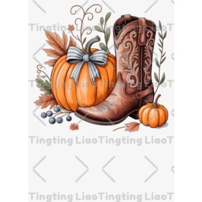 Orange,Brown,Green,Blue,White,Art,Classic,Season,Fashion,Cowboy Boots,Pumpkins,Autumn Leaves,Berries