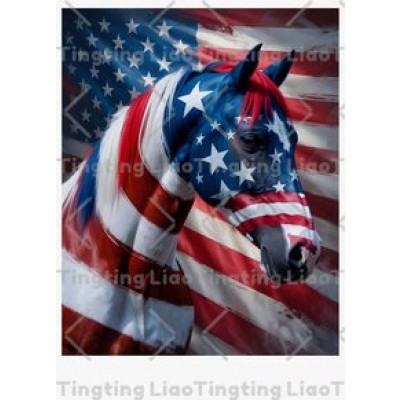 Independence Day,Patriotic,Art,Red,White,Blue,Horse,American Flag