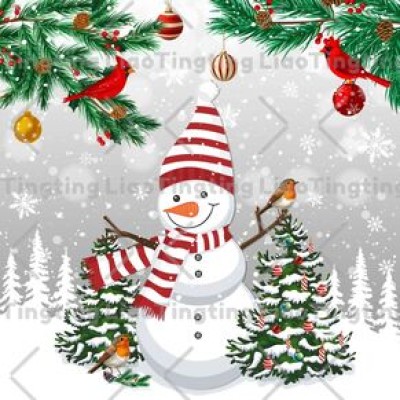 Christmas,Winter,Snowman,Christmas Tree,Robin,Gray