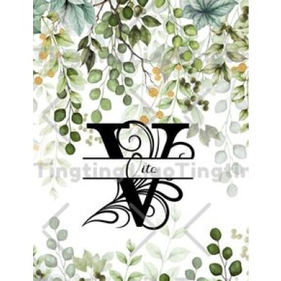 Letter Custom V,Sage Green,Eucalyptus Leaf,Farm,Farmhouse,Vintage