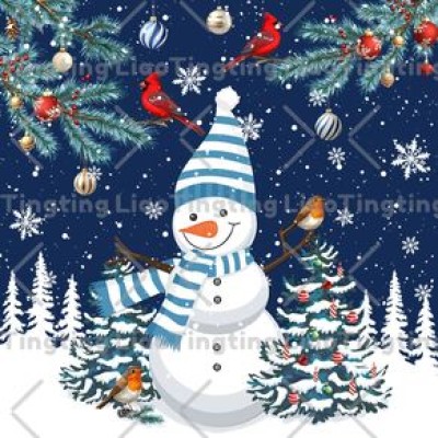 Christmas,Winter,Snowman,Christmas Tree,Robin,Navy Blue