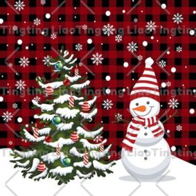 Christmas,Snowman,Christmas Tree,Winter,Snowflakes,Red Plaid