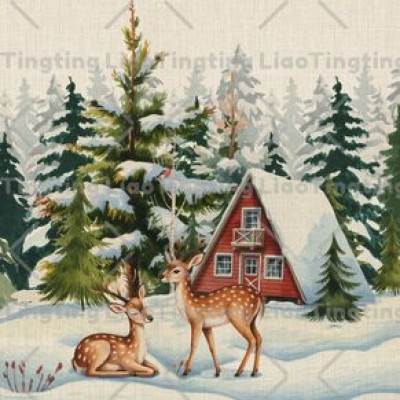 Winter,Christmas,Snowflake,Animal,Watercolor Style,Chalet,Elk,Pine