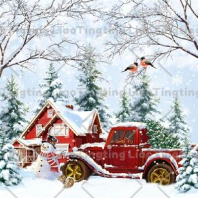 Christmas,Winter,Christmas Tree,Truck,Snowman,Farmhouse