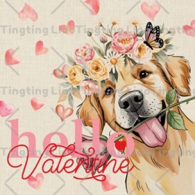 Valentine's Day,Love,Puppy,Golden Hair,Watercolor Style,Flowers,Country