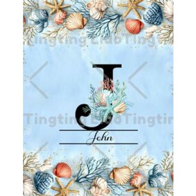 Letter Customization,Vintage,Ocean,Sandy Beach,Shells,Corals,Blue