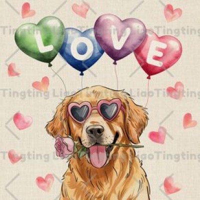 Valentine's Day,Love,Puppy,Golden Hair,Watercolor Style,Flowers,Country,Love