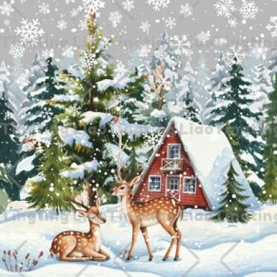Winter,Christmas,Snowflake,Animal,Watercolor Style,Chalet,Elk,Pine