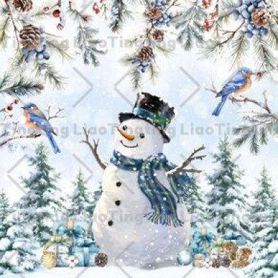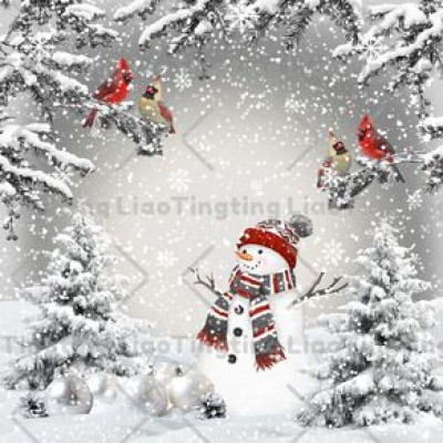 Christmas,Snowman,Christmas Tree,Berries,Christmas Bird,Grey Snowscape