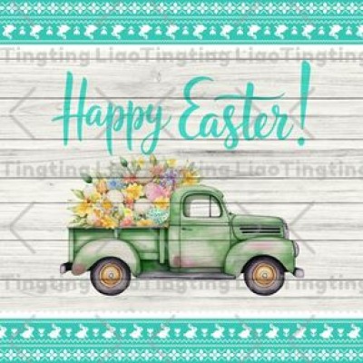 Easter,Spring,Watercolor Style,Hand-drawn,Trucks,Flowers,Eggs