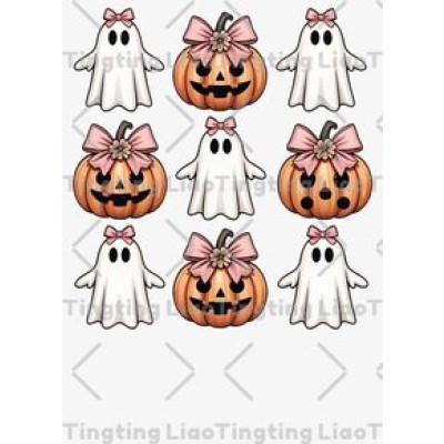Ghost,Cute,Pumpkin,Flowers,Bow