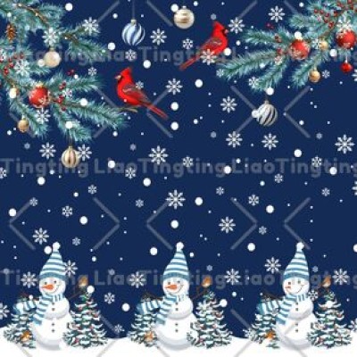 Christmas,Winter,Snowman,Christmas Tree,Robin,Navy Blue