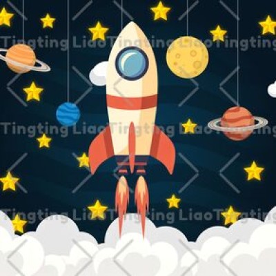 Space,Exploration,Cute,Spaceship,Rocket Pattern,Cartoon