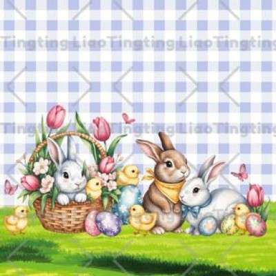 Easter,Spring,Watercolor Style,Hand-drawn,Rabbit,Flowers,Eggs