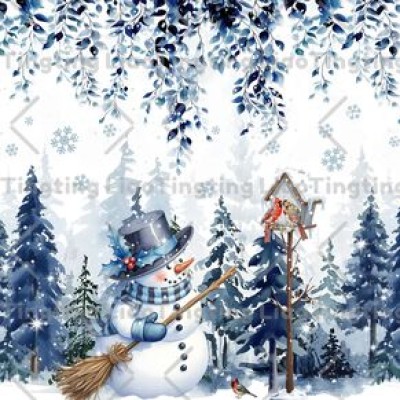 Christmas,Winter,Eucalyptus Leaves,Snowman,Christmas Tree,Snowfall,Watercolor