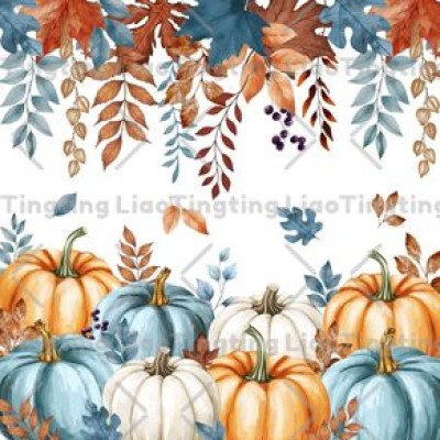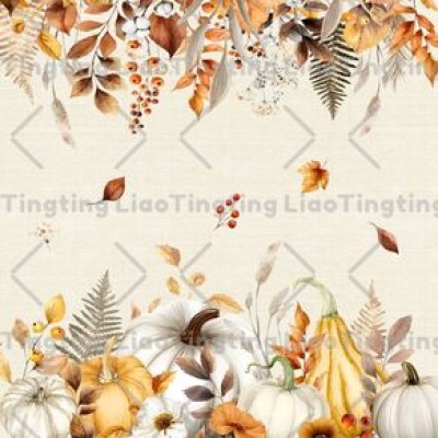 Thanksgiving,Autumn,Pumpkin,Yellow Leaf,Watercolor,Vintage,Jam,Cloth Pattern