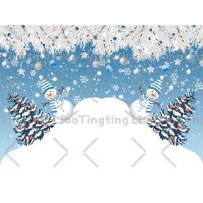 Christmas,Winter,Snowman,Snowflake,Christmas Tree,Gradient,Triangular Curtains,Blue And White