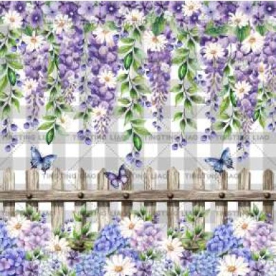 Spring,Flowers,Daisy,Lavender,Wood Fence,Butterflies,Watercolors,Grey Stripes