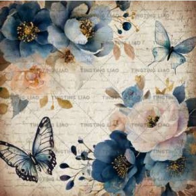 Spring,Flowers,Watercolors,Fields,Butterflies,Vintage Paper