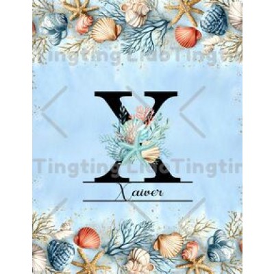 Letter Customization,Vintage,Ocean,Sandy Beach,Shells,Corals,Blue