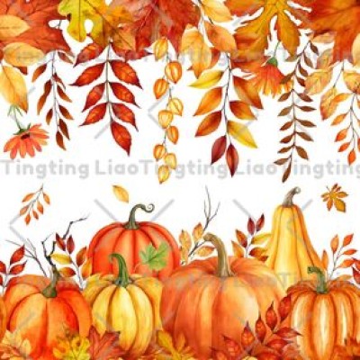 Thanksgiving,Autumn,Pumpkin,Maple Leaf,Watercolor Foliage,Vintage,Farm,Black And White Plaid