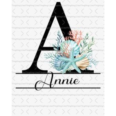 Custom Letter A,Ocean,Beach,Shell,Starfish,Coral