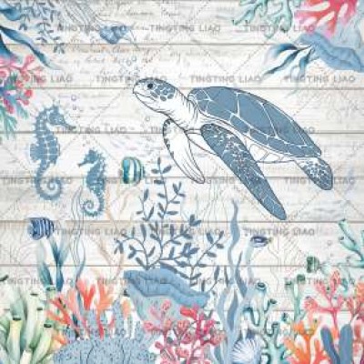 Marine Creatures,Sea Turtles,Corals,Watercolors,Small Fish,Retro