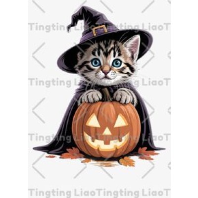 Cat,Halloween,Illustration,Pumpkin Lantern,Wizard Hat