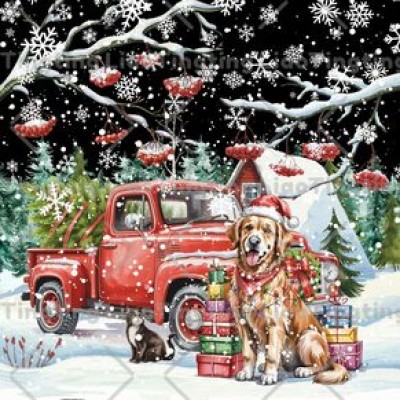 Winter,Christmas,Watercolor Style,Truck,Pine,Gingerbread,Golden Retriever,Berry,Wood Grain,Cat