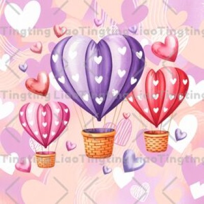 Valentine's Day,Hot Balloon,Love,Watercolor Style,Country
