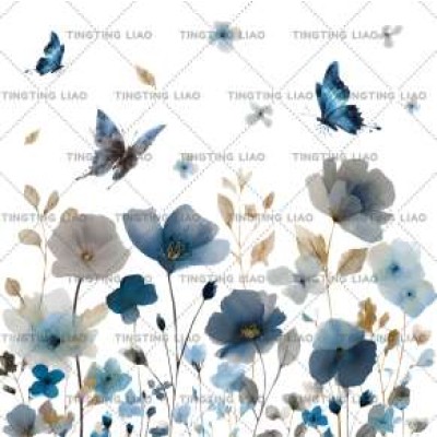 Spring,Flowers,Petals,Butterflies,Watercolor,Blue