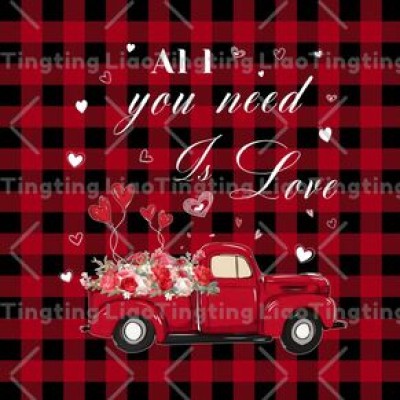 Valentine's Day,Love Balloon,Romantic,Red Truck With Roses,Stretched,Red Black