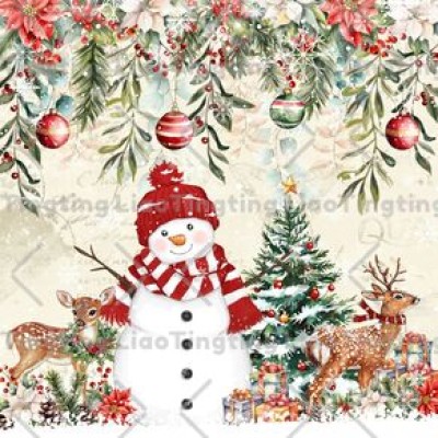Winter,Christmas,Watercolor Style,Pine,Snowflake,Snowman,Squirrel
