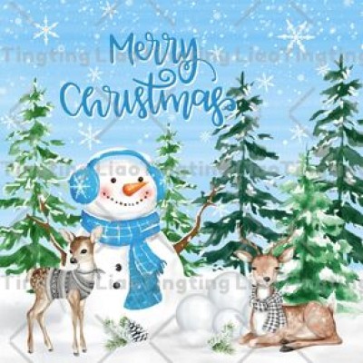 Christmas,Winter,Snowman,Christmas Tree,Deer,Snowflake,Sky Blue Bottom