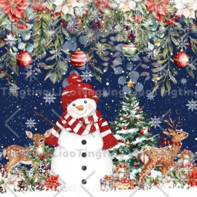 Christmas,Winter,Snowman,One Red,Berries,Spruce Leaves,Christmas Ball,Eucalyptus Leaves,Navy Blue
